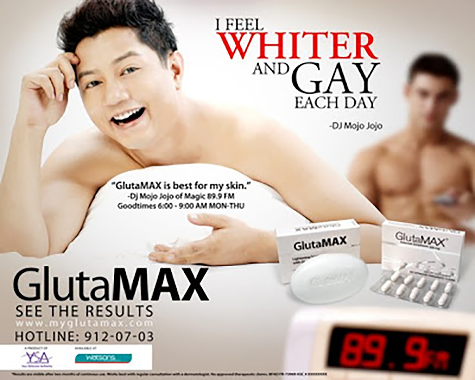 Controversial, yet again, but now for GlutaMAX's targeted advertising to gay Filipino men. The "scandal" mainly centered the fact that Queerness is a polarizing issue in the Catholic Philippines. Yet, I am more critical of how in Post/Colonial Philippines, whiteness is directly linked to the effeminate gay Filipino man.
